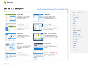 그리고 설치한 extjs package내에 또는 Sencha 사이트에 extjs의 API가 상세하게 나와 있으므로 각 요소(Grid, Chart, Frame 등)들의 속성도 확인할 수 있다.