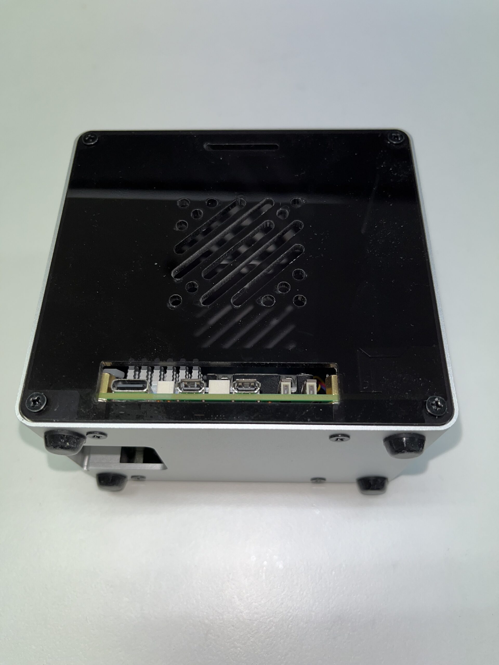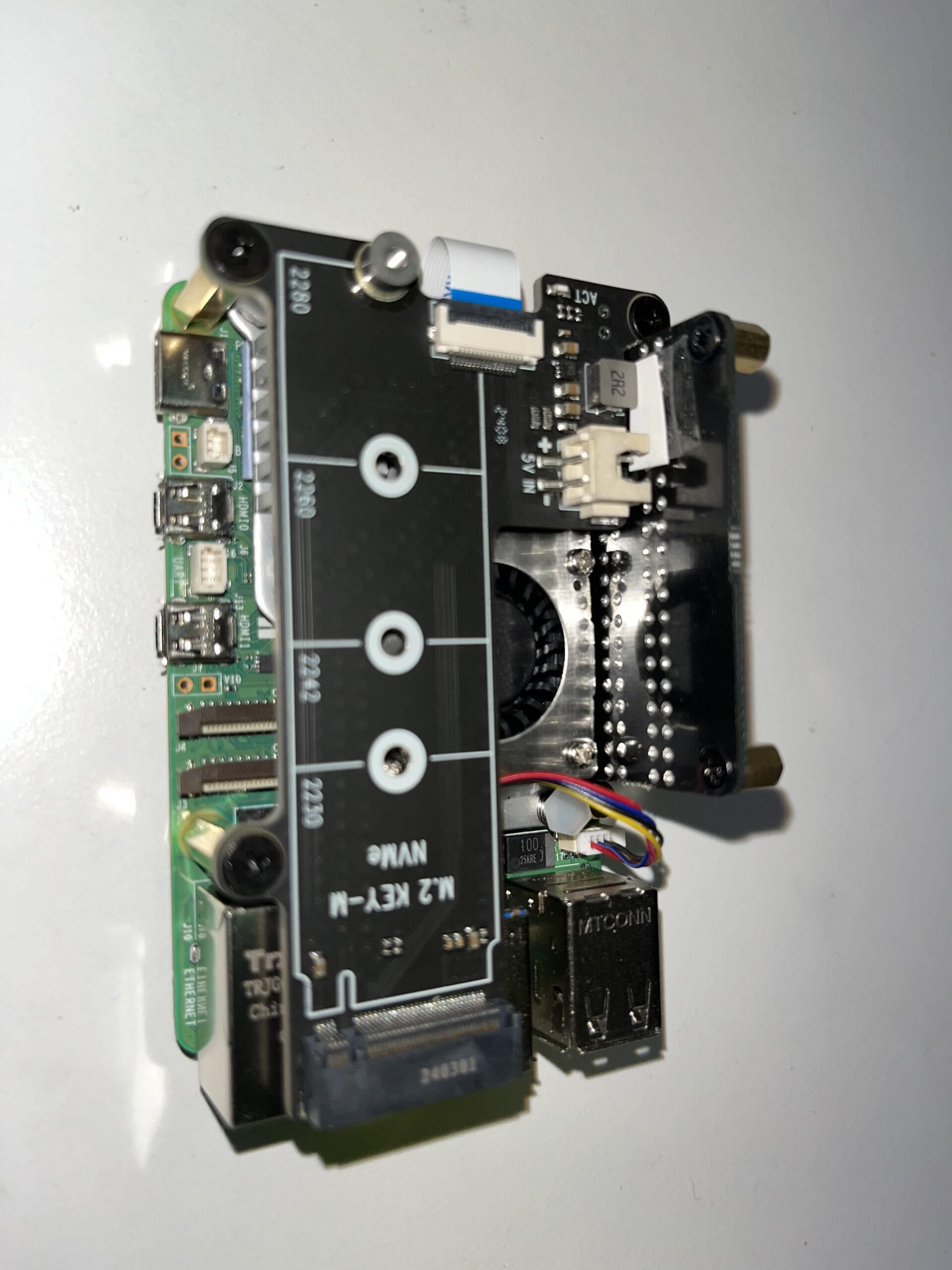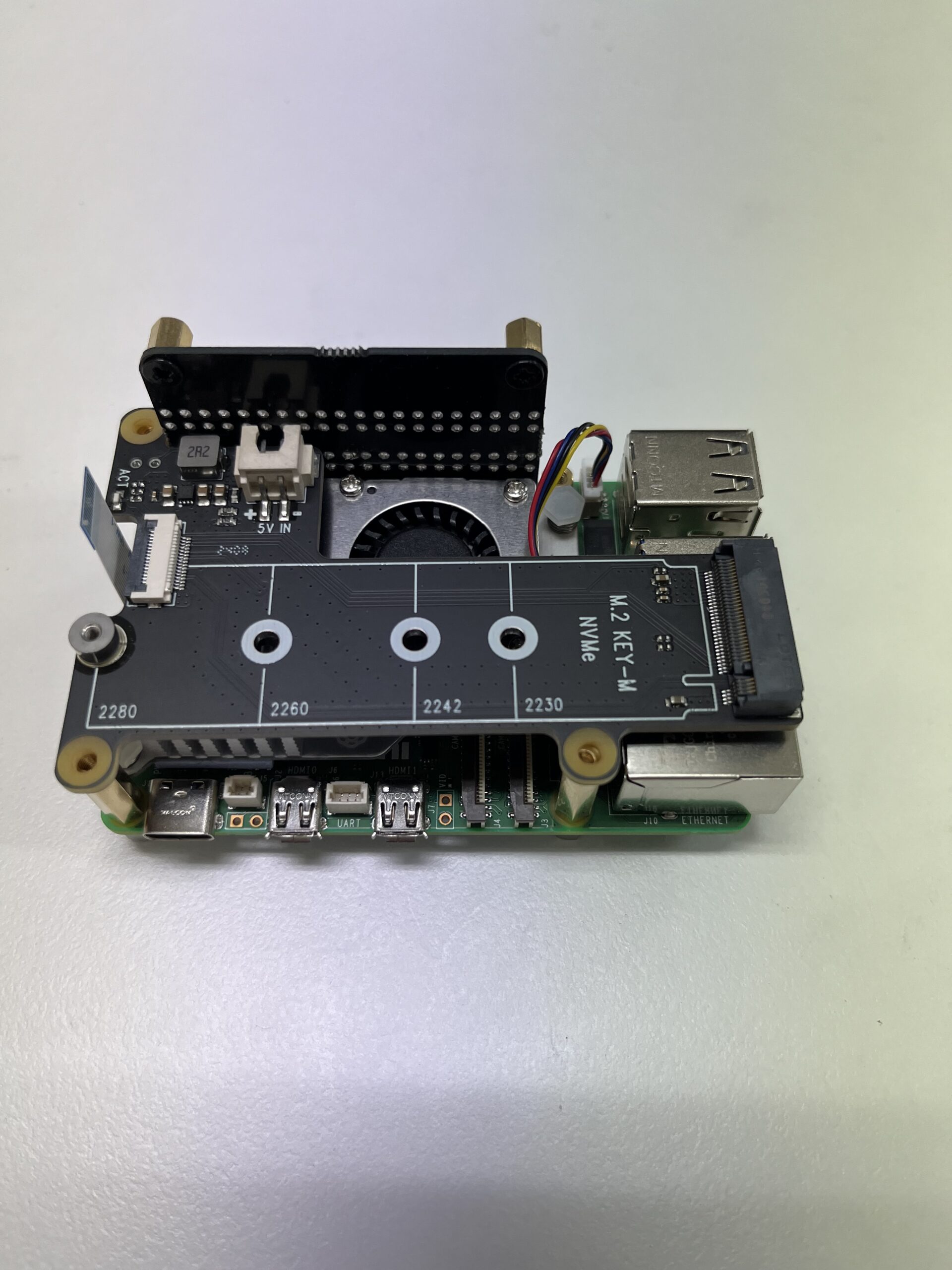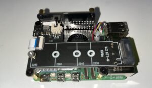 약간의 문제가 있었는데 NVMe M.2 HAT을 연결하기 전에는 케이스에 보드가 쉽게 들어간다. 하지만 HAT을 단단히 연결한 다음에는 케이스에 넣기가 쉽지 않다. 혹시라도 깨지거나 부러질까봐 힘을 세게 쓰지도 못하고 옆에서 살짝씩 힘을 주고 밀어넣었다.